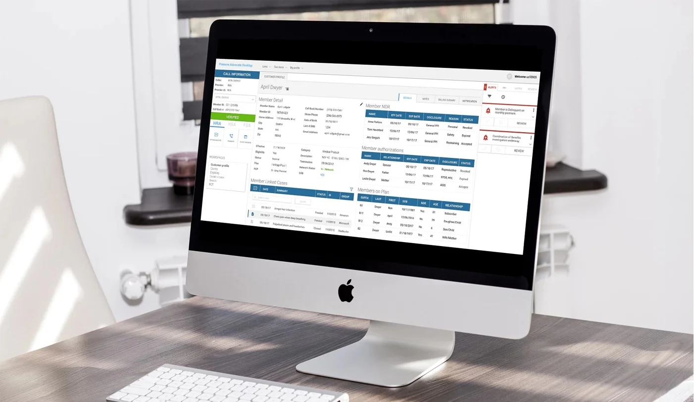 Customer service representatives (CSRs) at Premera had been using an outdated interface called Facets for years to answer customer phone calls about health insurance benefits, eligibility, claims, etc. CSRs require 12 weeks of training to be able to answer even basic calls from medical providers, and the Facets application that they used was far from intuitive. The goal of Advocate Desktop was to build a new program in Microsoft Dynamics that would result in: